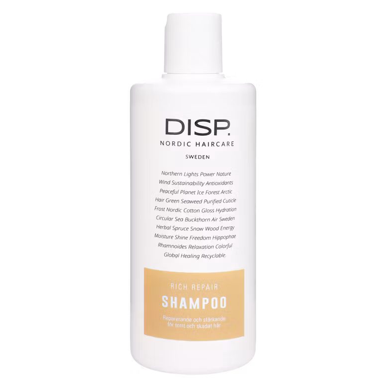 Användning: Fördela i fuktigt hår, massera lätt, skölj noga och upprepa vid behov. Avsluta med disp® Rich Repair Conditioner.