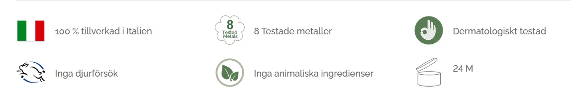 INCI: ALKOHOL DENAT., VATTEN (AQUA), PARFYM (DOFT), TETRAMETYLACETYLOKTAHYDRONAFTALENER, TOKOFERYLACETAT, CITRONSYRA, ALFA-ISOMETYLJONON, BENSALDEHYD, BETA-KARYOFYLLEN, CITRAL, CITRONELLOL, CITRUS CITRONSKALOLJA, EUGENOL, GERANIOL, GERANYLACETAT, ISOEUGENYLACETAT, LIMONEN, LINALOOL, LINALYLACETAT, PINEN, POGOSTEMON CABLIN-OLJA, ROSKETONER, TERPINOL, TERPINOLEN